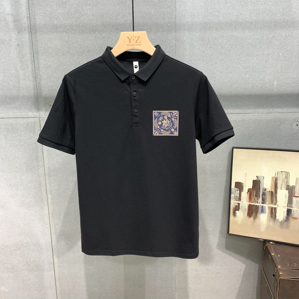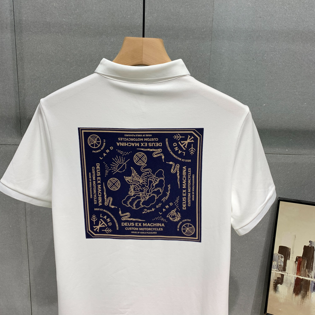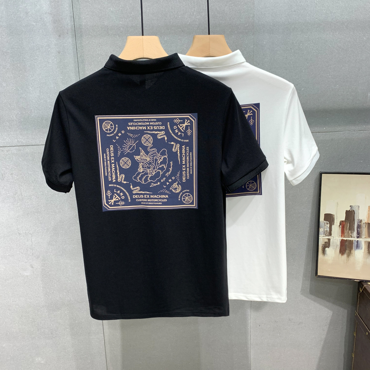 Tide brand fashion printed Polo shirt men's short-sleeved trendy handsome half-sleeved T-shirt men's casual lapel Polo shirt