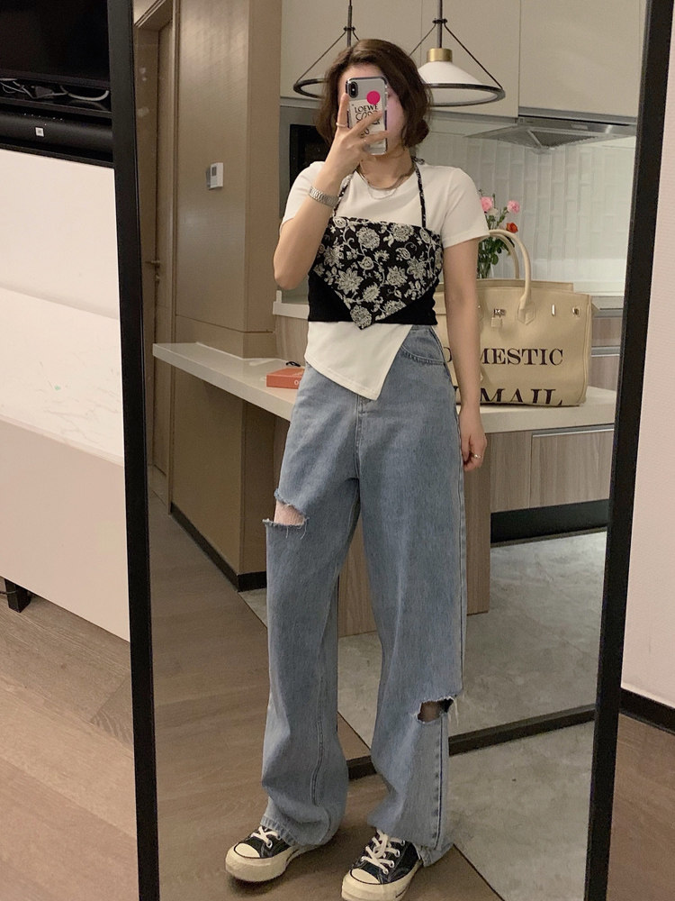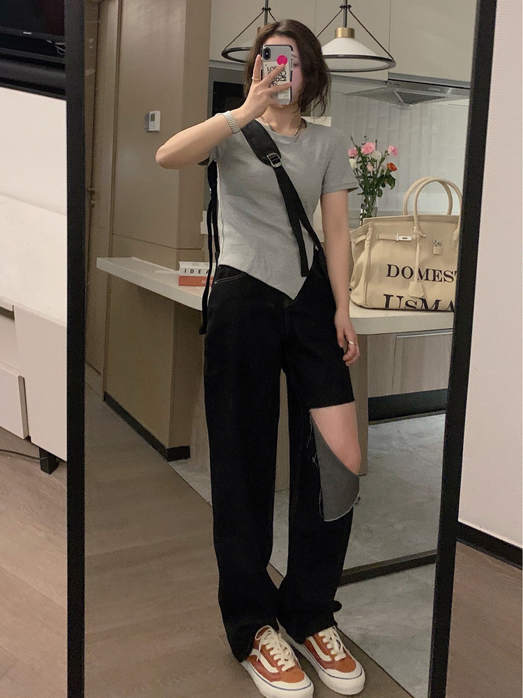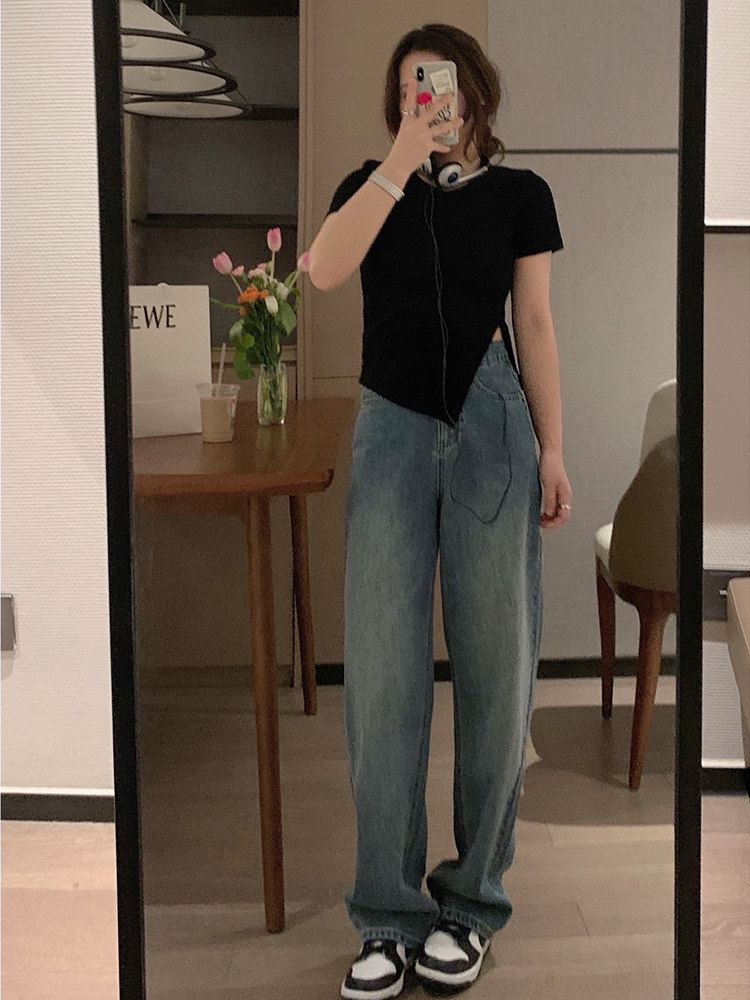 VEEE short-sleeved women's summer design sense niche hot girls slim slim short top hypotenuse small split versatile T-shirt