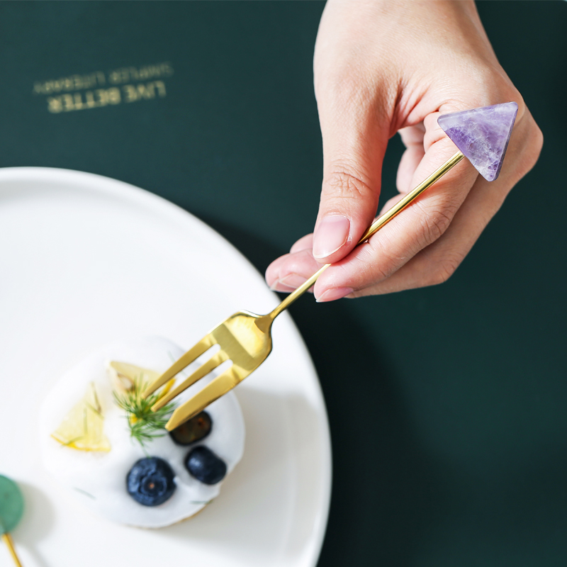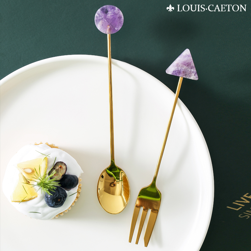 Creative stainless steel coffee spoon ins Nordic light luxury natural stone fruit fork spoon long handle mixing spoon dessert spoon