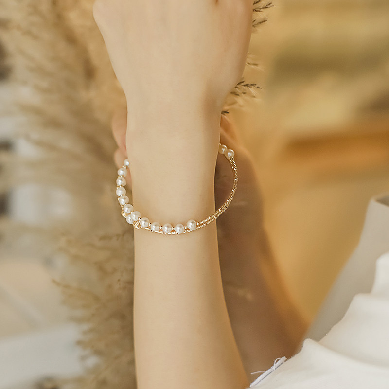 OARVA natural freshwater pearl bracelet female Xia ins niche design 14K gold-packed non-fading double-layer bracelet