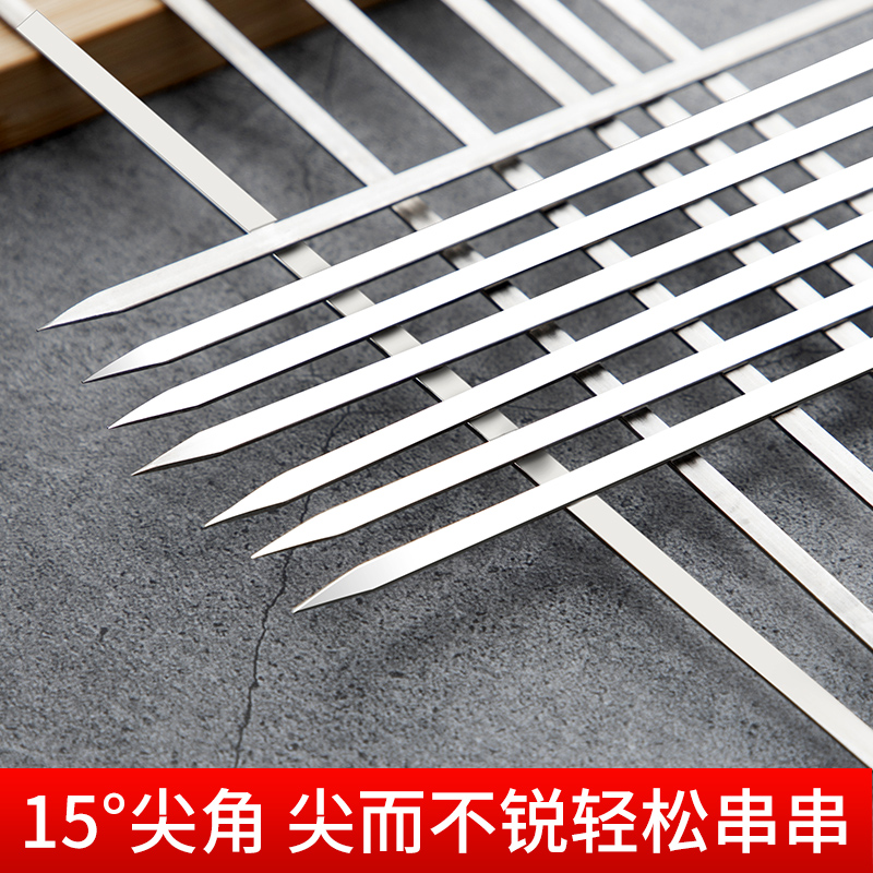 Stainless steel barbecue sign wearing string lamb skewer barbecue needle outdoor barbecue tool flat sign wearing meat brazing steel brazing