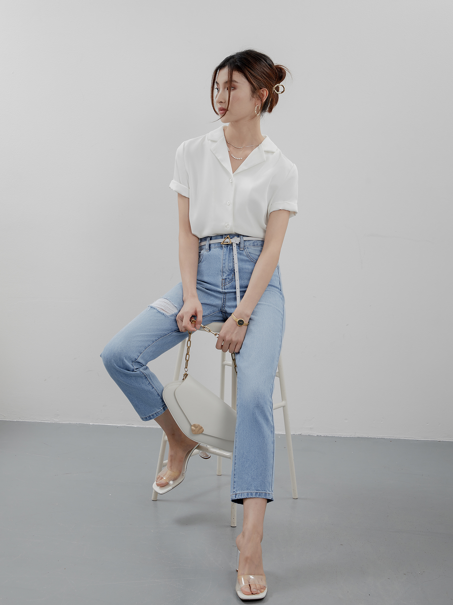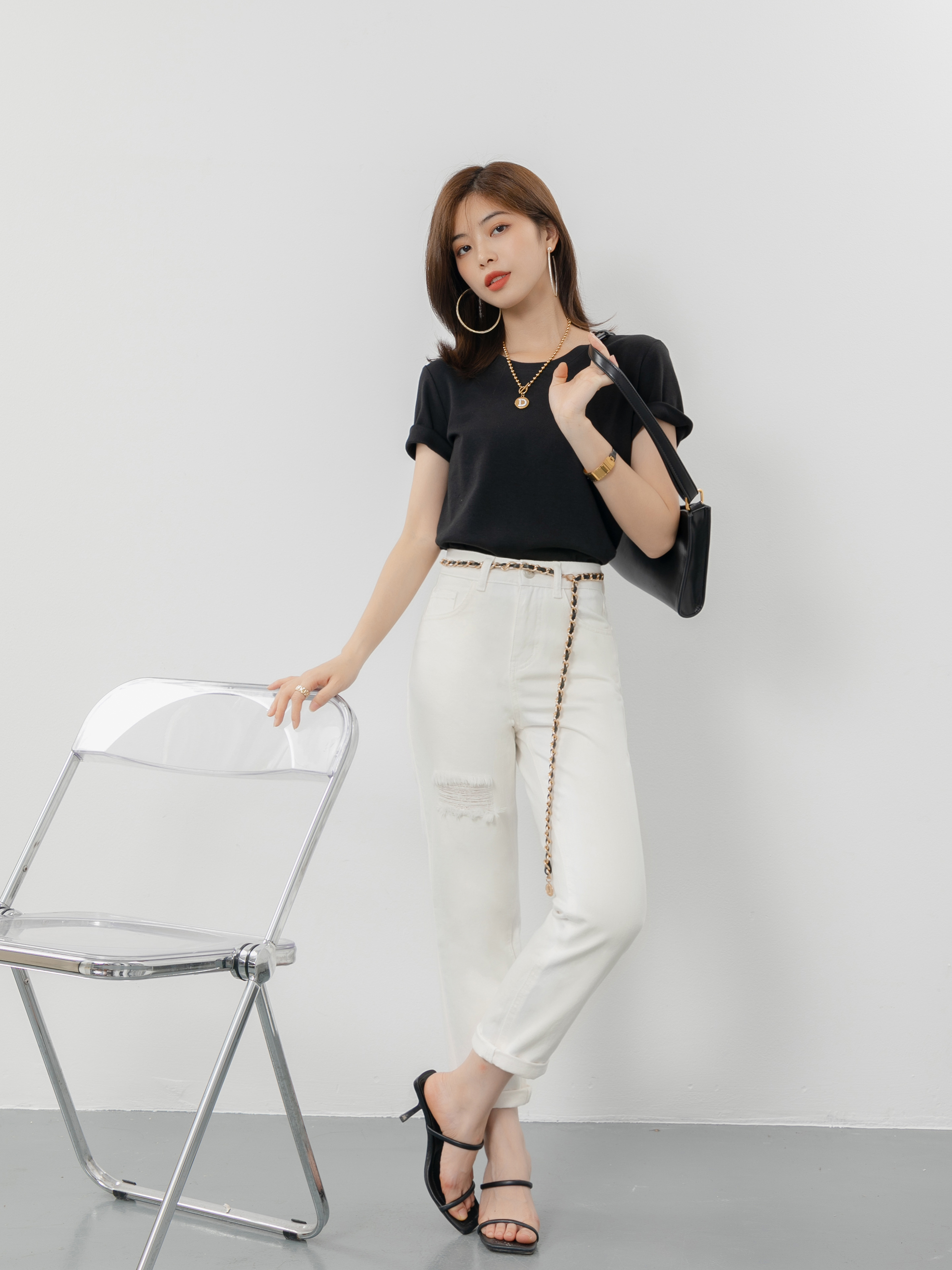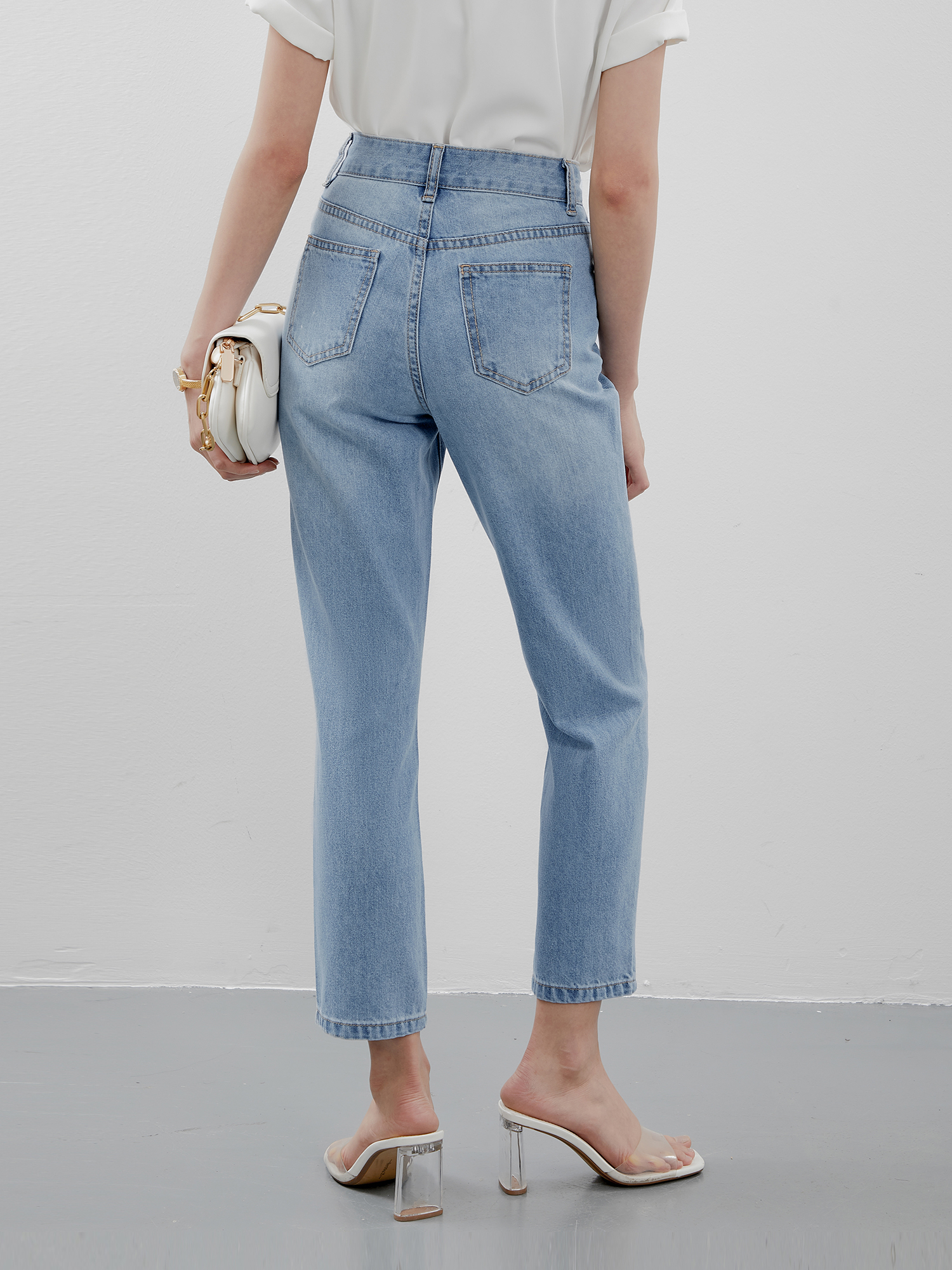 A small pants new blue hundred high waist straight pants jeans female spring autumn 0493