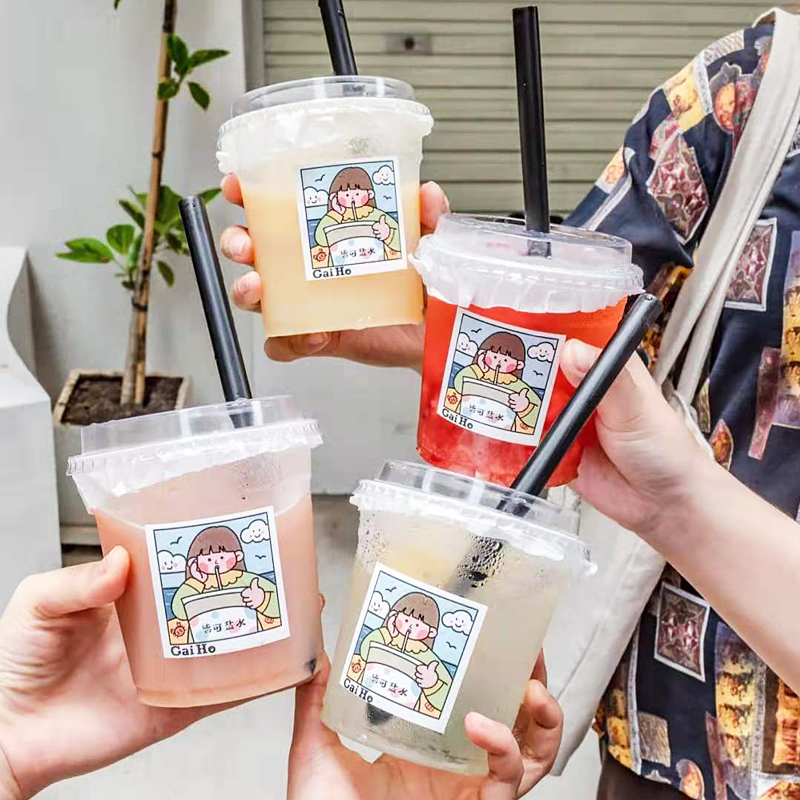 Cups, round lids, straws, leak-proof paper, fat girls, 50 sets of stickers