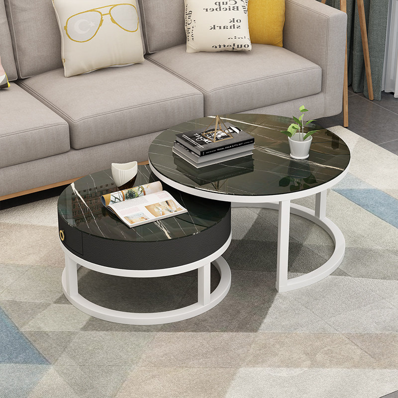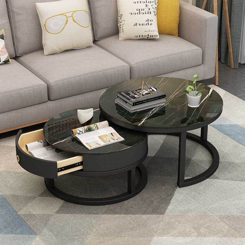 Nordic coffee table living room creative small apartment household round tempered glass simple multifunctional small coffee table table combination