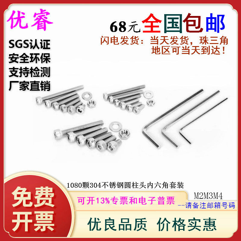 1080 grains of 304 stainless steel cylindrical head inner hexagon set with flat washer nut Amazon export home set