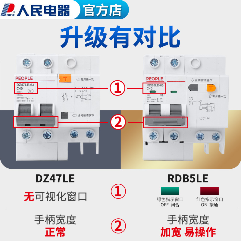 People's Electric RDB5LE leakage protector with air switch 2p circuit breaker 63a household 220v leakage protection 32a