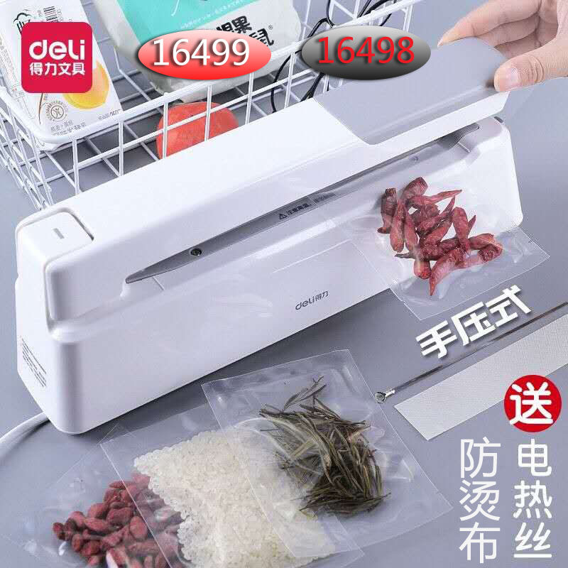Deli 16499 hand pressure sealing machine thermoplastic sealing commercial packaging machine tea plastic bag food small household