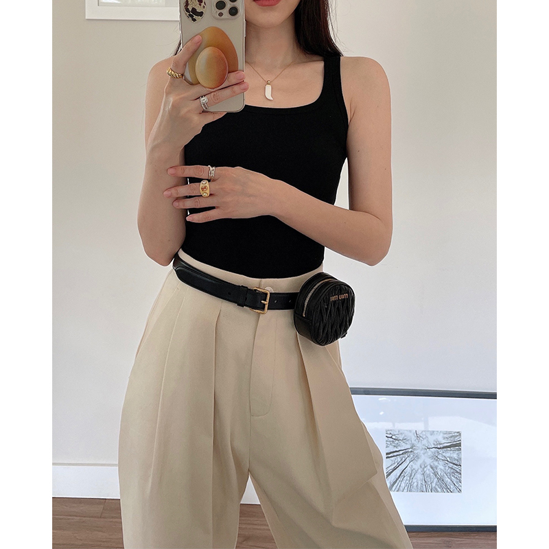 Crochet black and white two-color I-shaped sleeveless vest women's self-cultivation inner wear bottoming beautiful back T-shirt top outer wear suspenders