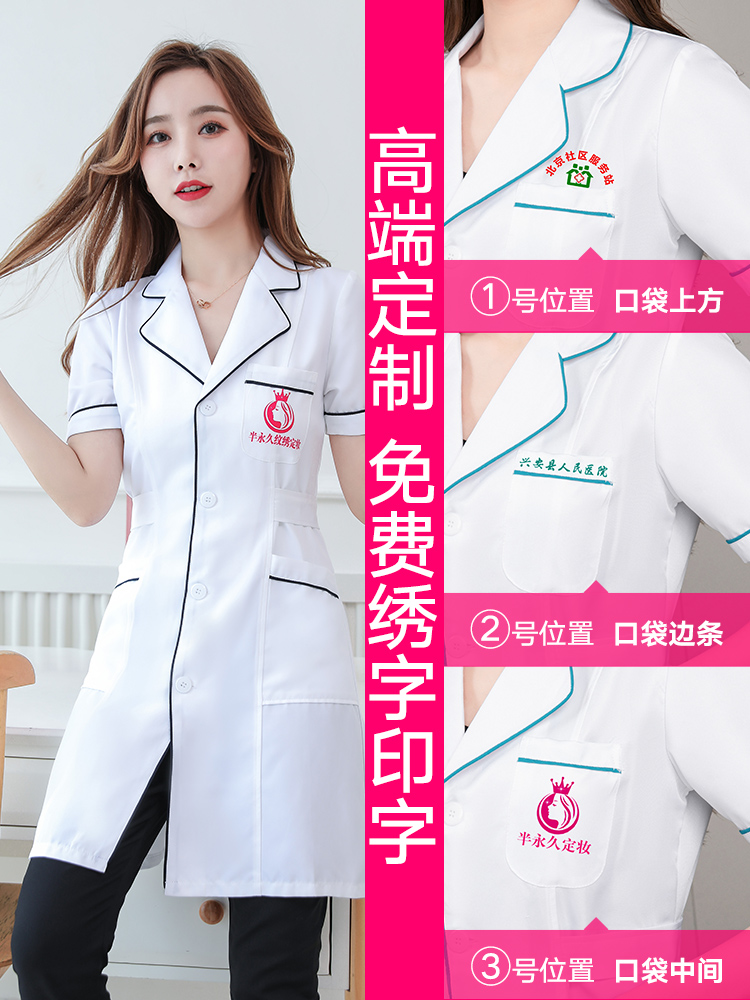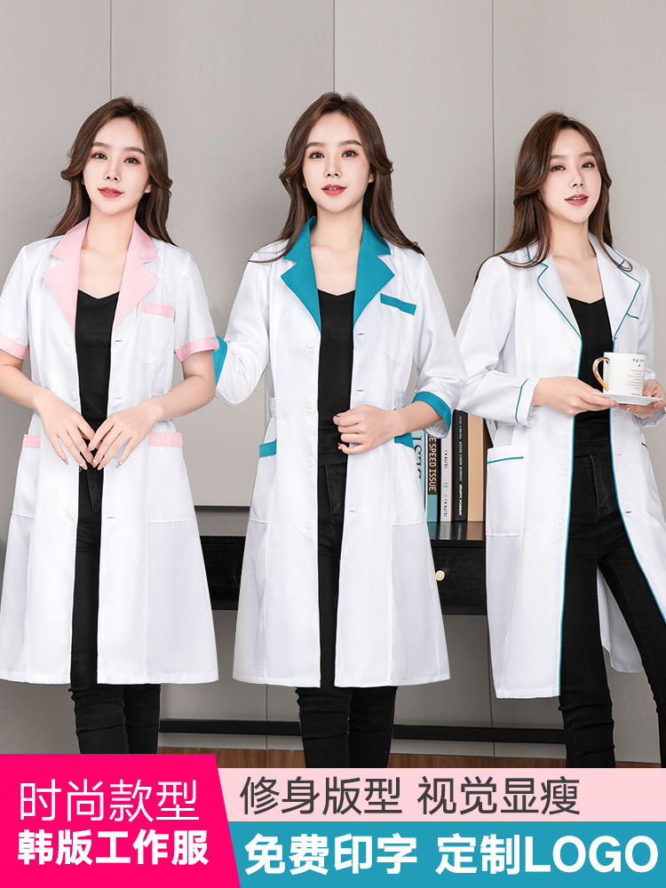 Beautician beauty salon work clothes female short summer white coat doctor clothes nurse white clothes skin management long sleeves