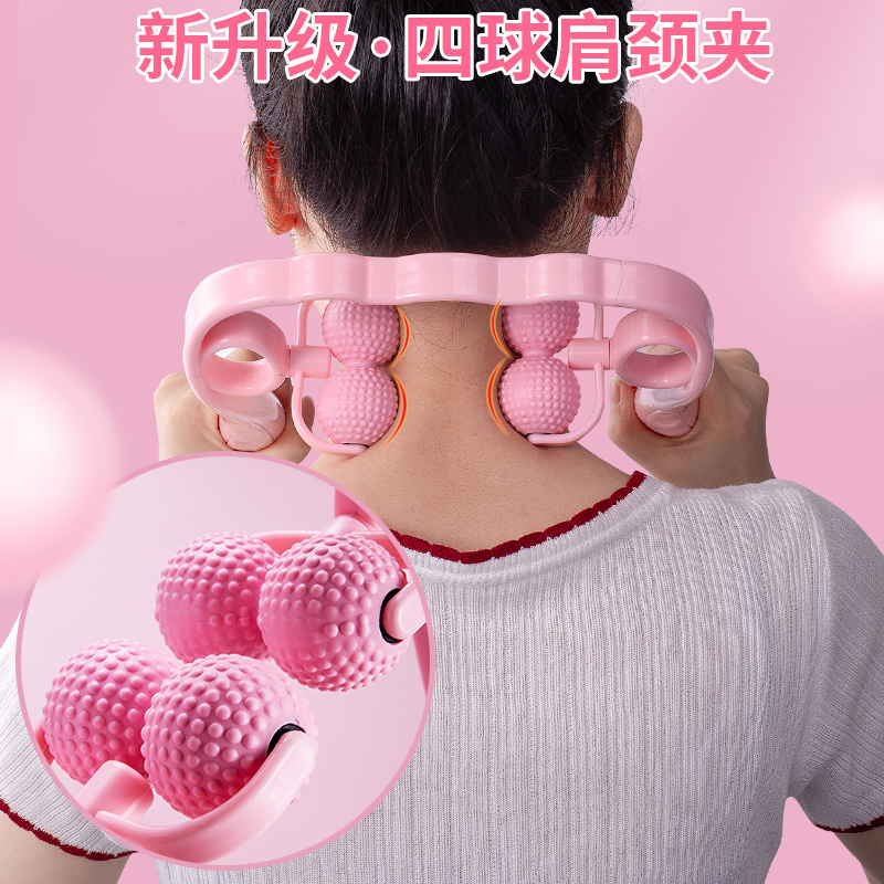 Pink four-ball cervical spine with a boxed (purple four-ball) cervical spine massager blue four-ball cervical spine with a boxed shoulder-neck-rolling bar blue four-ball pink four-ball combined dress (purple four balls)