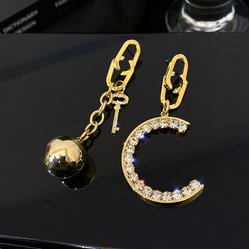 Korean sterling silver needle earrings female exaggerated asymmetric ear needle 2022 new trend high-end long version moon earrings