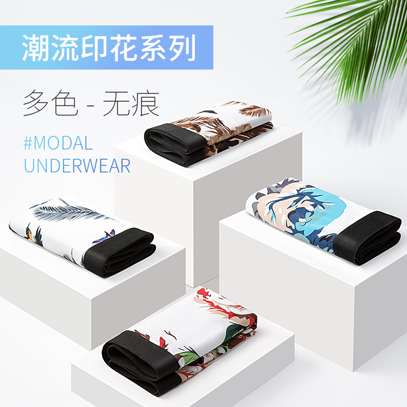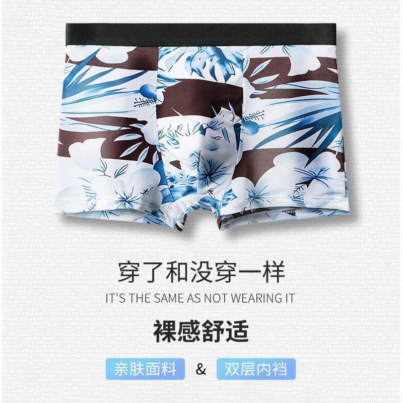 Men's underwear pure cotton crotch summer ice silk boys boxer shorts slits trend personality thin section sports boxer shorts head