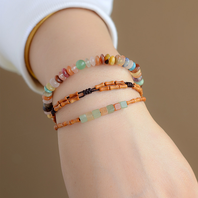 Original pure natural bamboo festival olive core multiple circle of jewelry and crystal retro-fat crystal bracelet