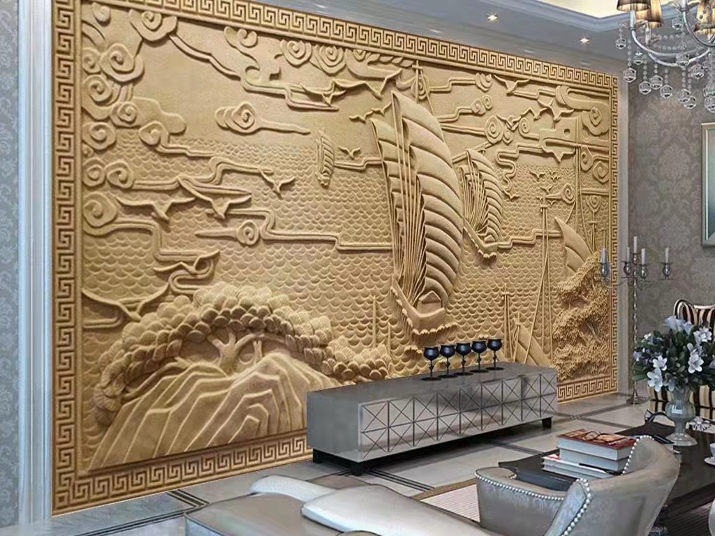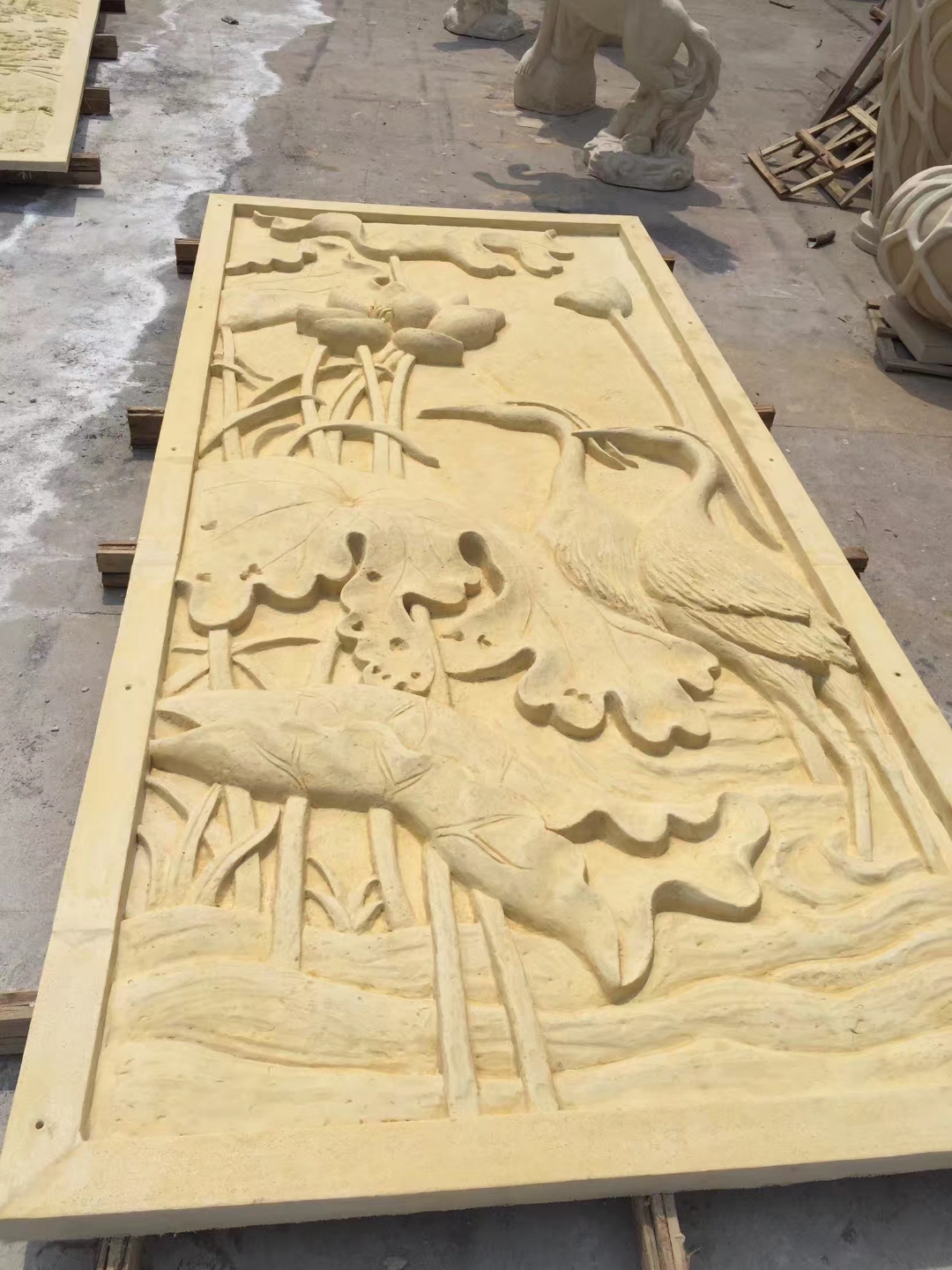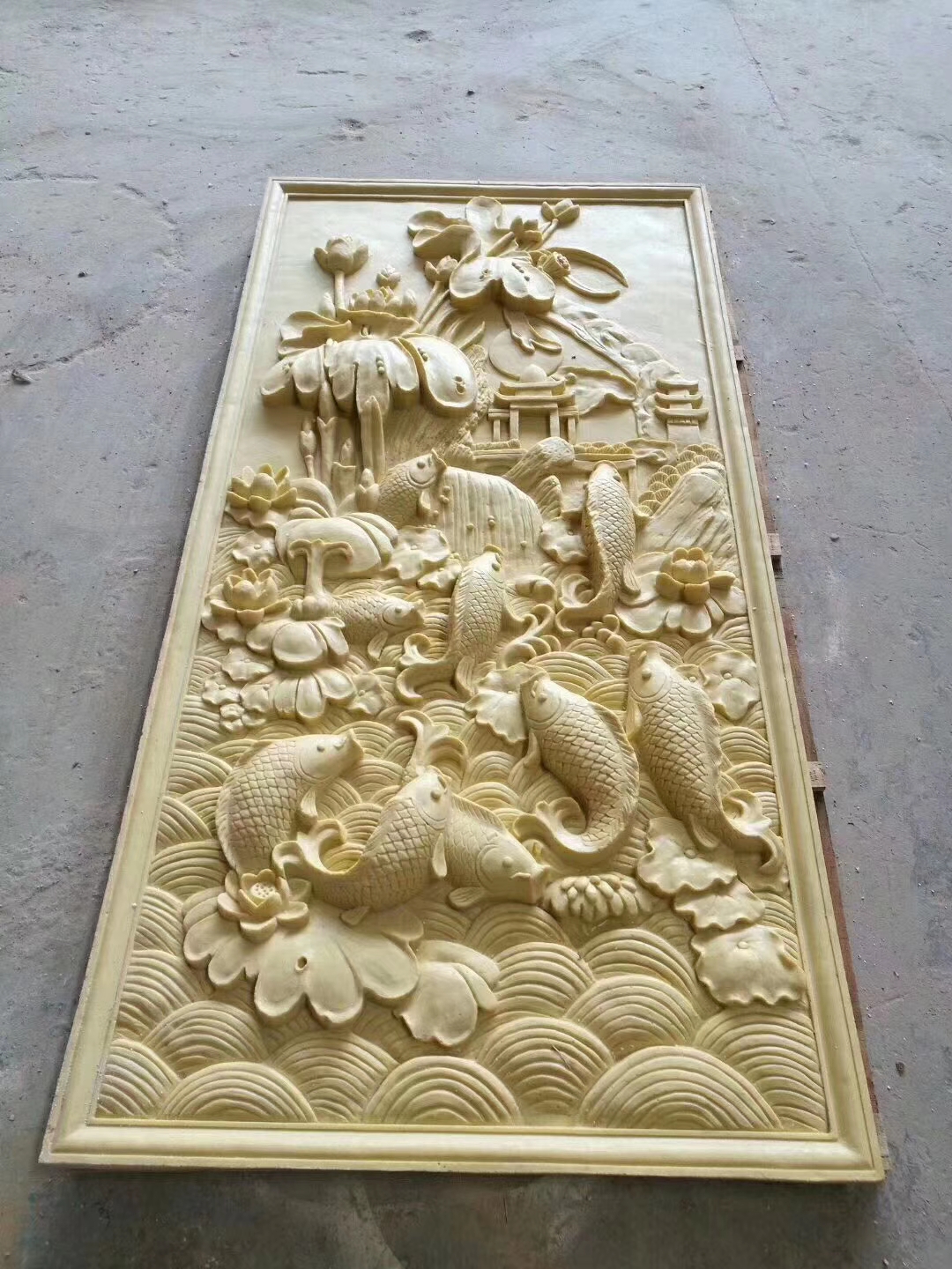 Sandstone relief background wall painting Chinese sandstone relief carp carp figure exterior wall of façade