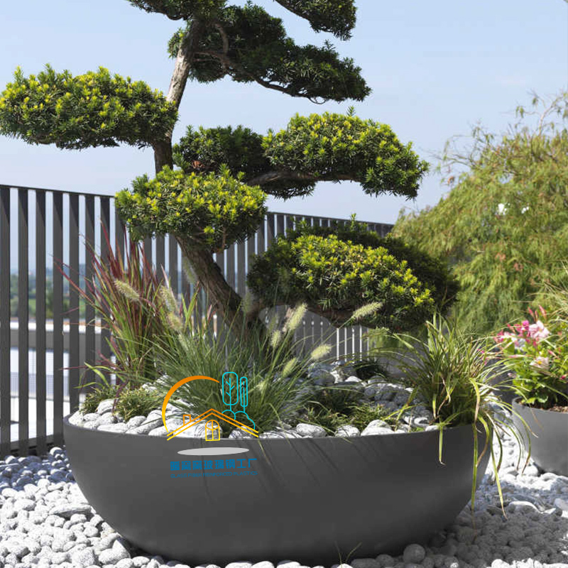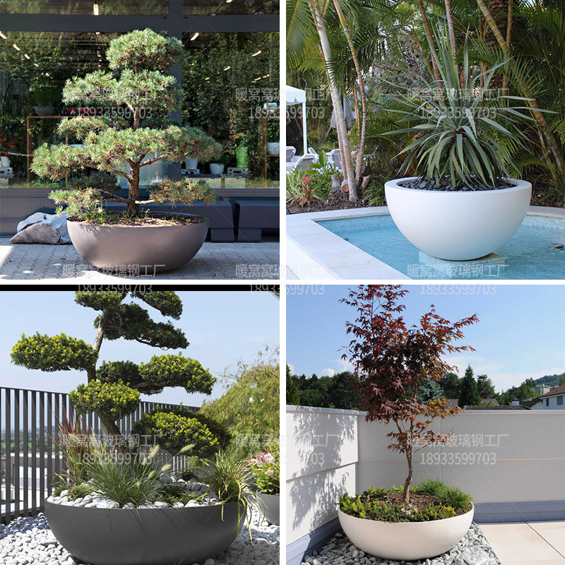 Customized fiberglass flowerpot shopping mall square park Meichen oval outdoor creative flower tank floor planting large flower pot