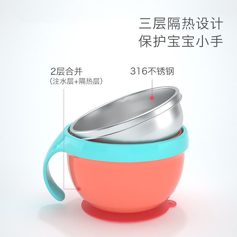 Children's bowl anti-wrestling baby stainless steel tableware learning to train infants and toddlers water injection by food bowl sucker