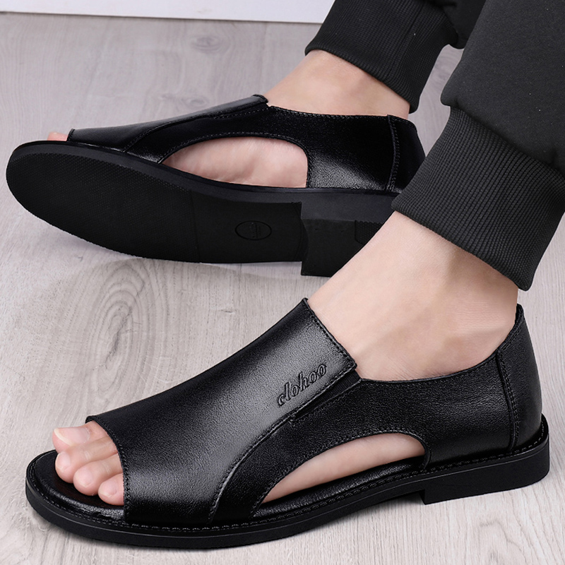 2022 Summer new men's genuine leather Toes Beach Shoes Non-slip Soft Bottom Roman Shoes Business Casual Sandals Men