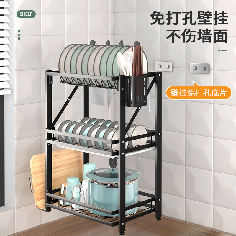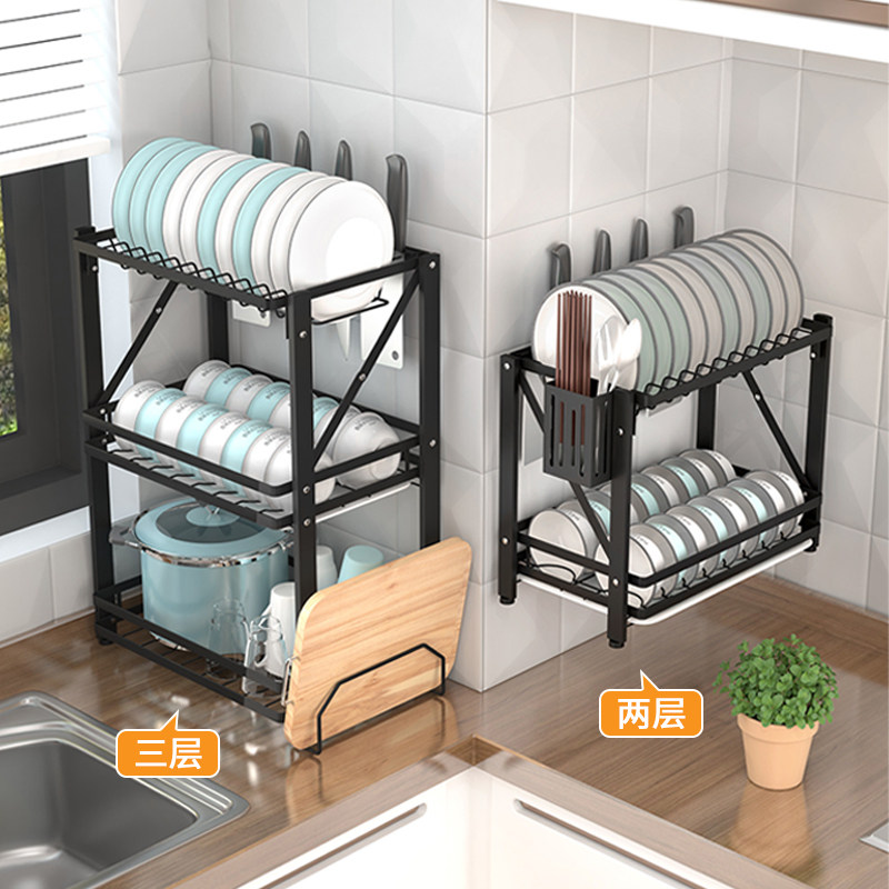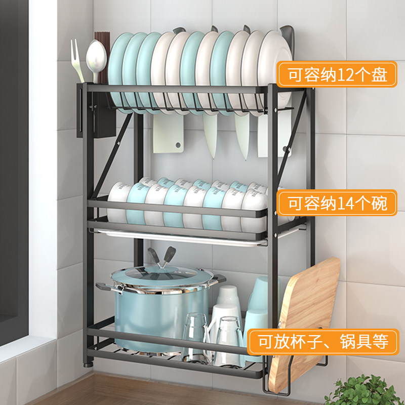 Kitchen rack drying dishes household drain rack wall-mounted multi-layer countertop folding tableware filter water storage rack