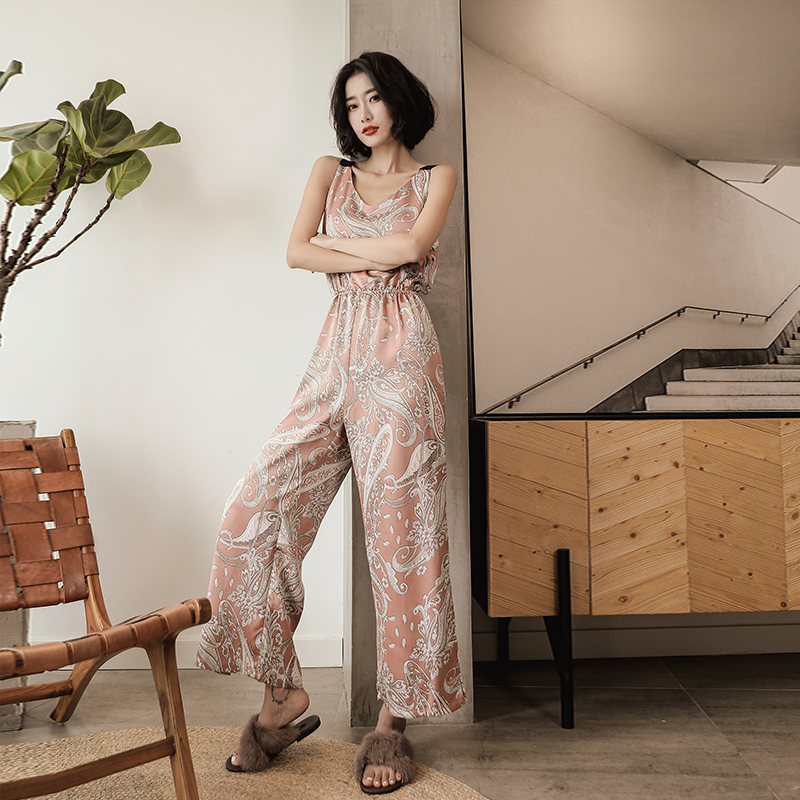 VIRRI CIAGA~ Gentle as water! Silk pajama women's summer thin jumpsuit can be worn outer