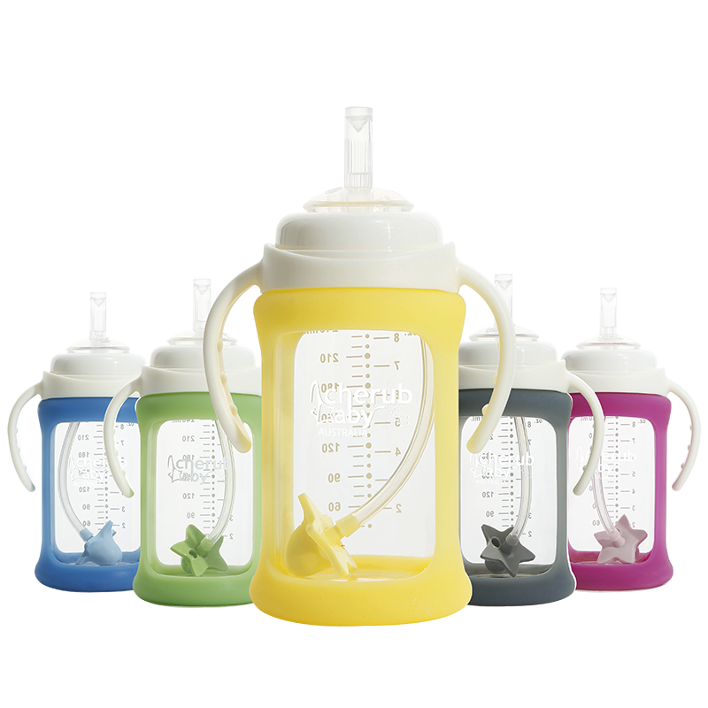 hi multi beauty anecdole bebe baby glass straw cup secondary food suction nozzle milk bottle anti-choking anti-fall