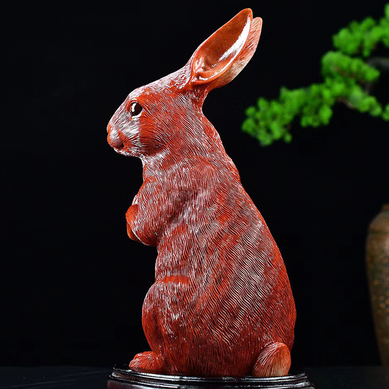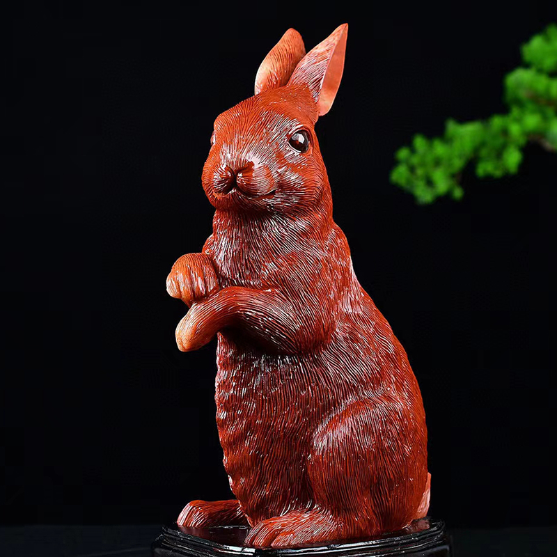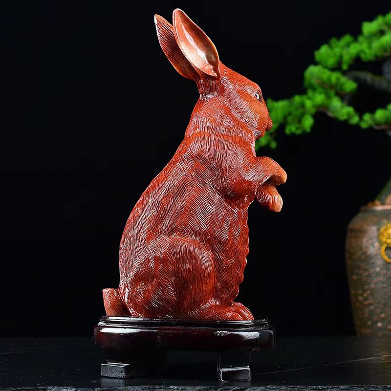 Fujian Shoushan Stone Large Standing Rabbit Large Swing Piece Natural Wonder Stone Clubhouse Furnishing Handcrafted Engraving Crafts Gift Pendulum Decoration Collection Certificate