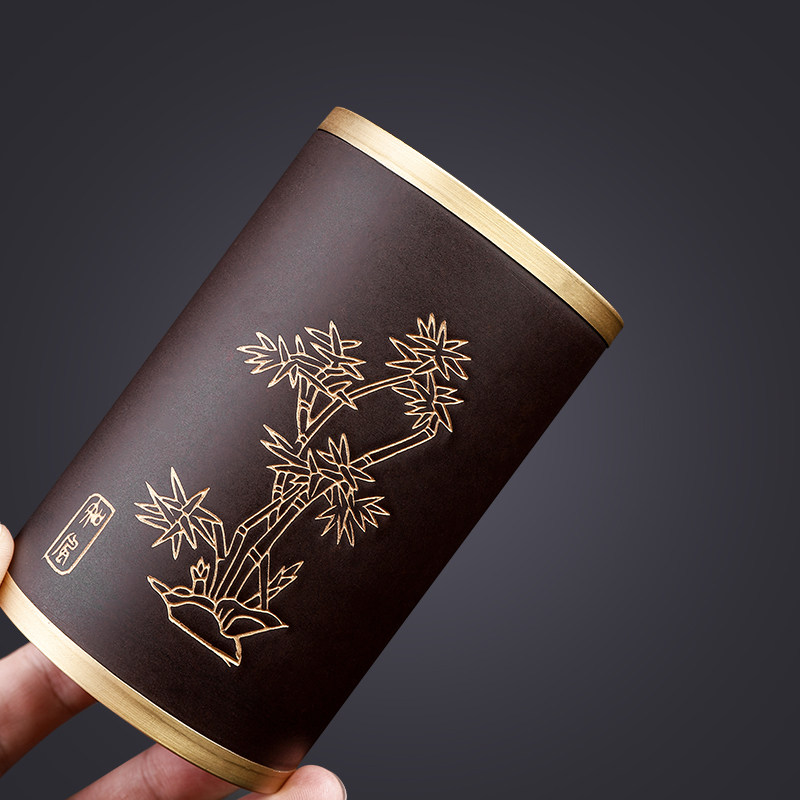 Zhifeng tea tube Black sandalwood copper 5-piece set-158