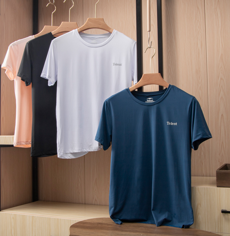 Ice Silk Smooth Brand Discount Oversized Elastic Speed Dry Fabric Men's Pure Color Round Collar Sports Fitness Short Sleeve T-shirt