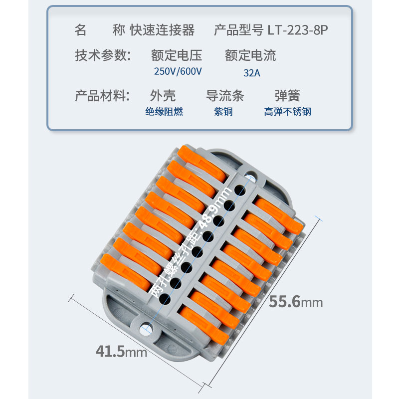 Fixed eight-in-eight-out wire connector quick terminal row plug-in connector quick connector
