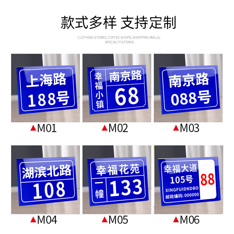 House number plate, door number, aluminum plate, reflective room number, home number, digital sign, custom-made street shop, custom-made building number plate, community unit, building-level indication, listing number, brand word customization