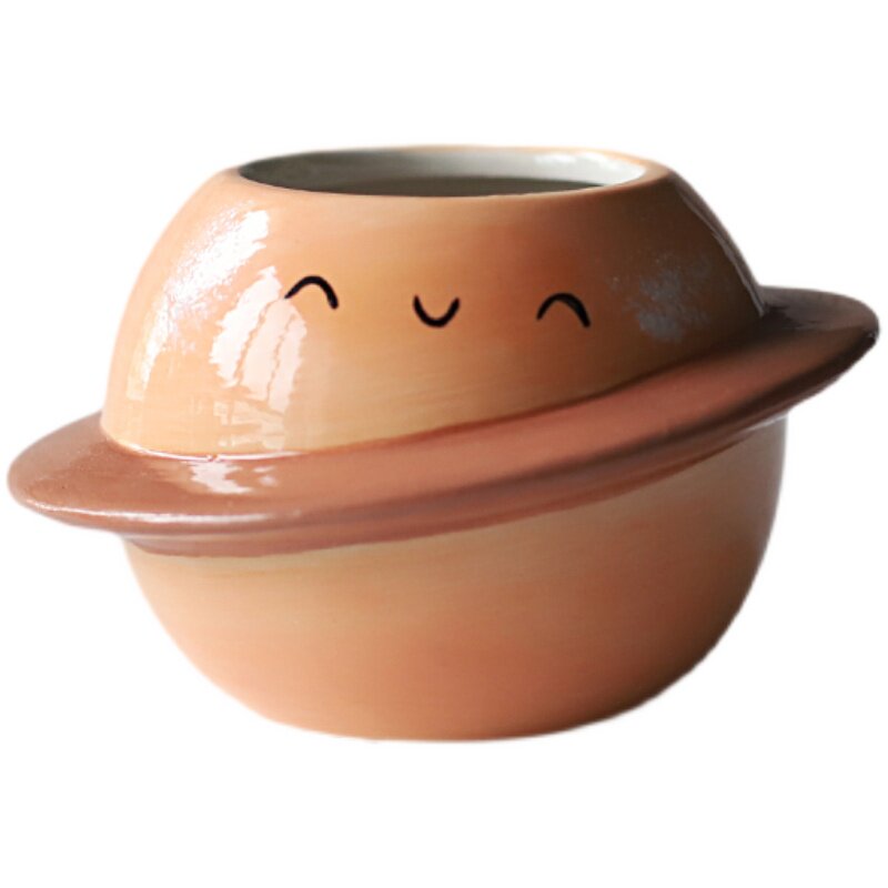 Ceramic succulent small flower pot creative personality cute and delicate cartoon planet desktop bonsai Japanese healing small ornaments