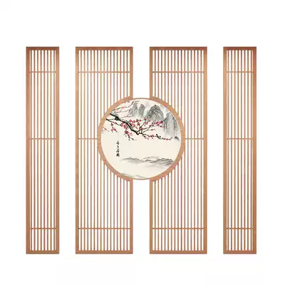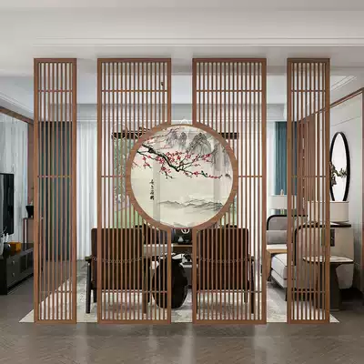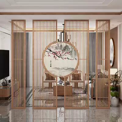 New Chinese style solid wood screen partition wall living room office simple modern entrance entrance hollow landscape flowers and birds