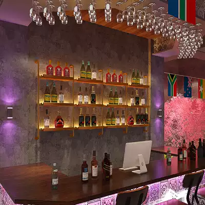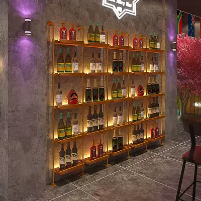 Bar luminous wall hanging Wine Rack bar bar solid wood iron partition wall column wine rack decoration display wine rack wine cabinet