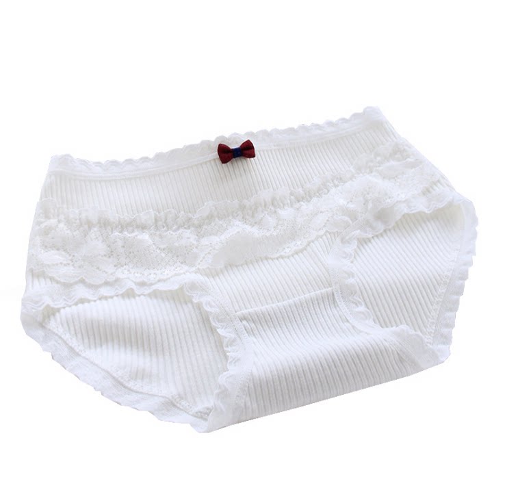 White cotton underwear female Japanese lace girl soft breathable large size cotton antibacterial briefs solid color summer