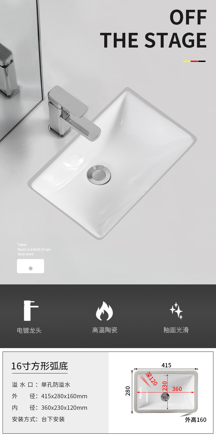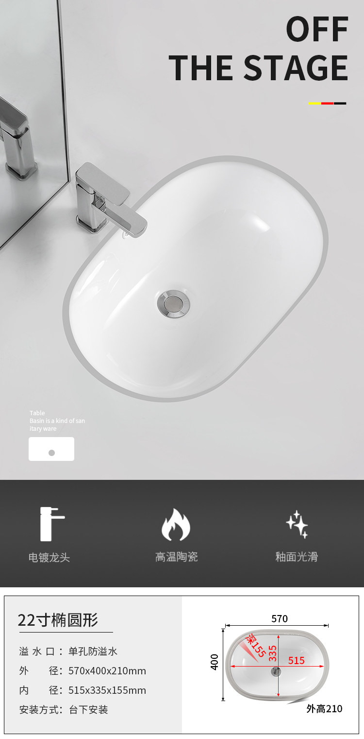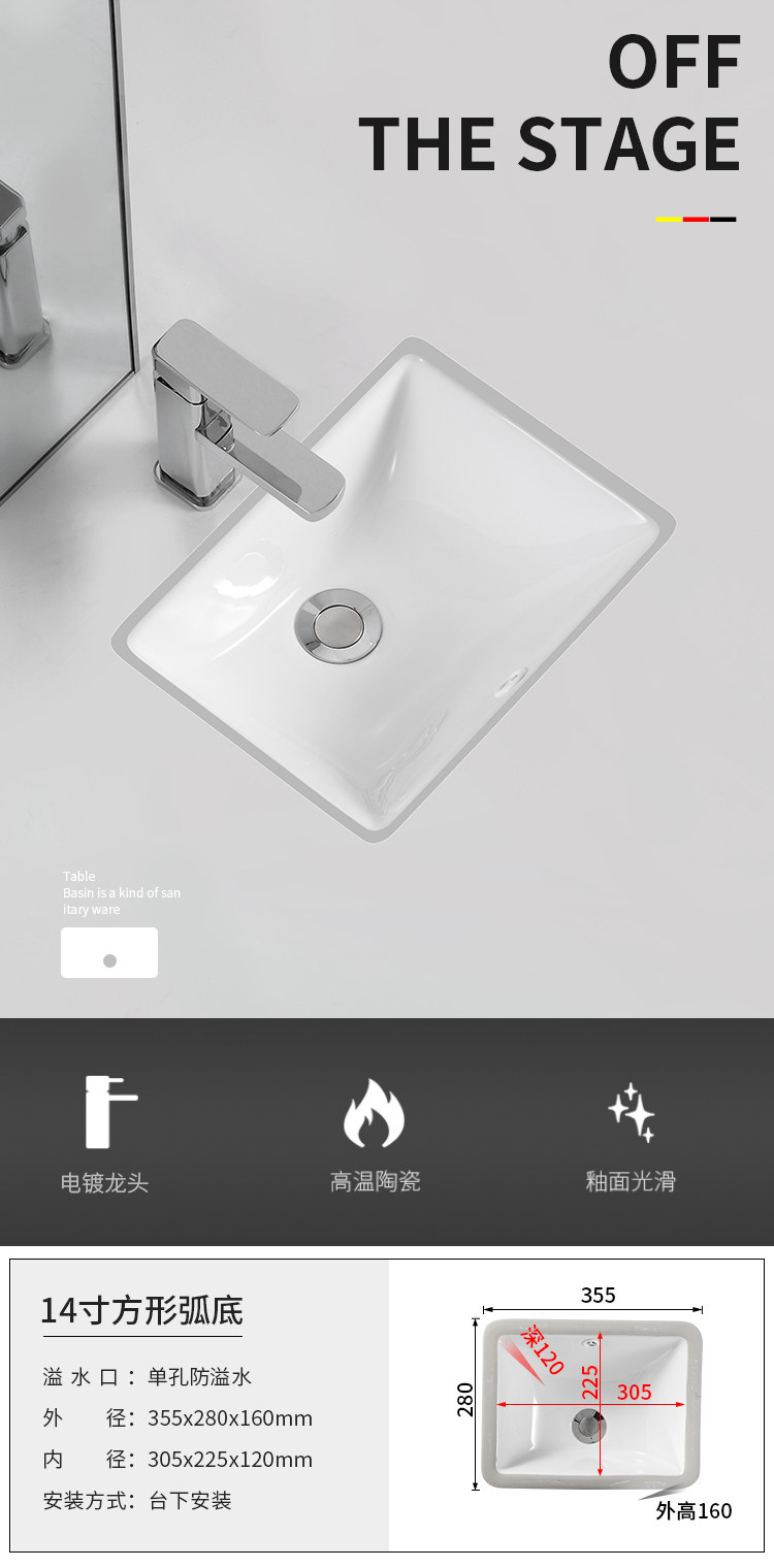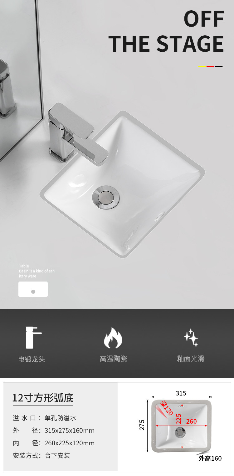 Undercounter basin mini small size small embedded ceramic small apartment square melon-shaped oval wash basin