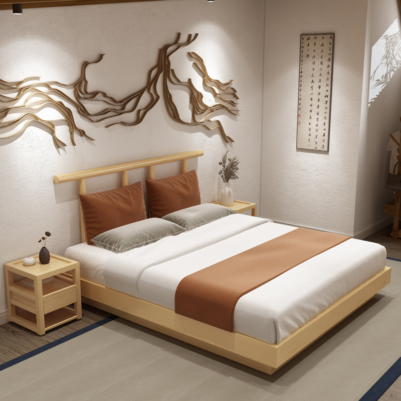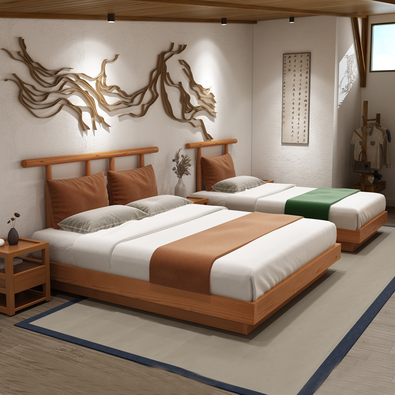 Hotel furniture inn standard room full set of platform bed solid wood simple modern Chinese style homestay floor bed low bed customization