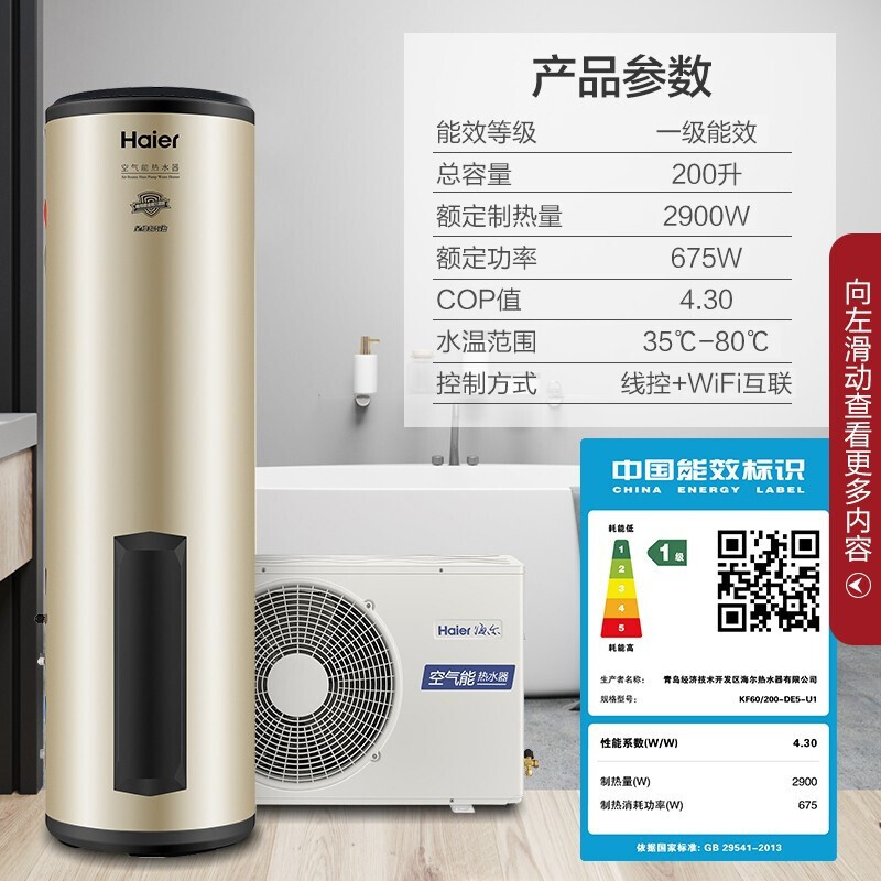Haier Haier air energy water heater 200 litres DC frequency conversion super-level energy efficiency KF60 200-DE5-U1