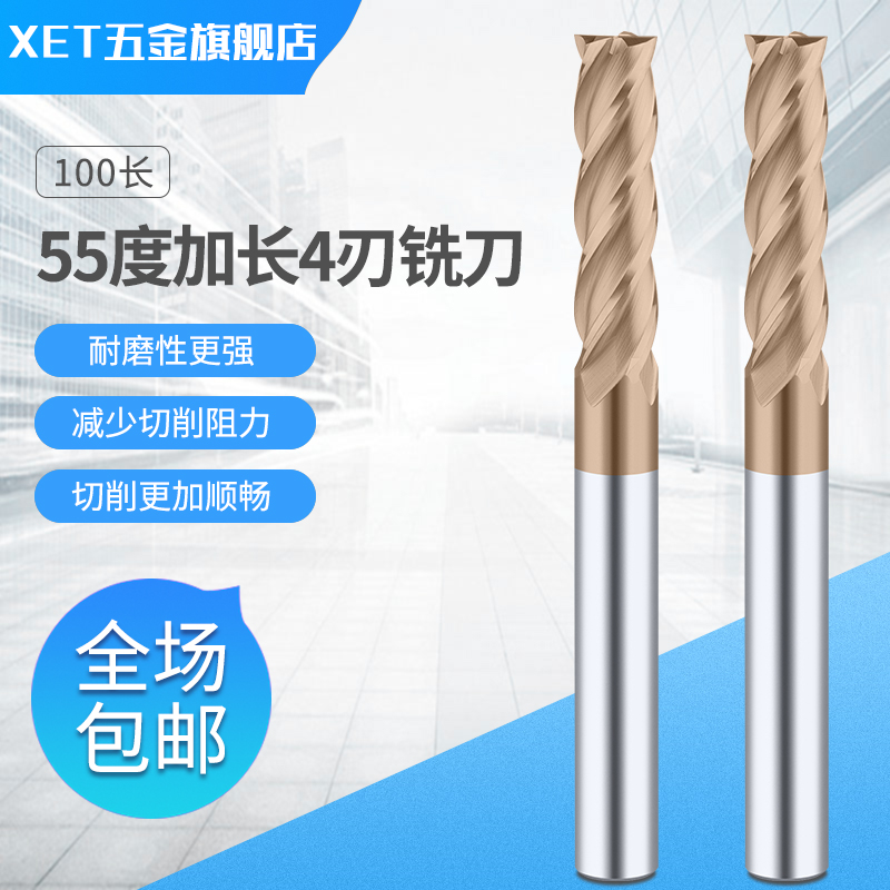 XET tungsten milling cutter 4 - edge 55 - degree length 100 carbide vertical milling cutter CNC machining center stainless steel CNC