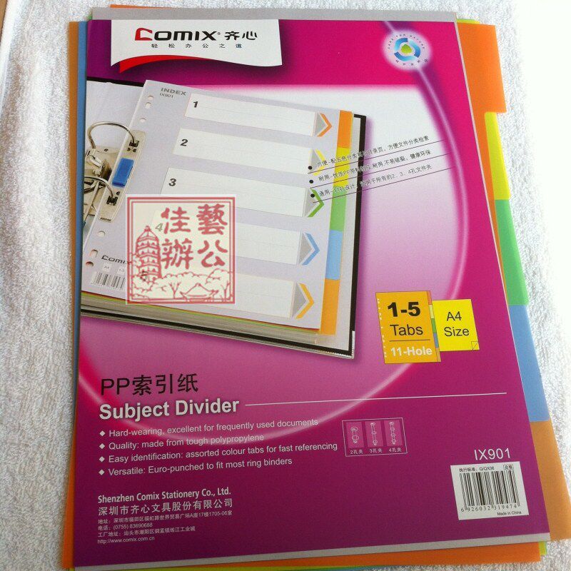 Comix Qi Heart IX901 Five Color pp Index Paper 5 Gpages Paged paper Plastic sorting paper 11 holes File sepp sheet paper
