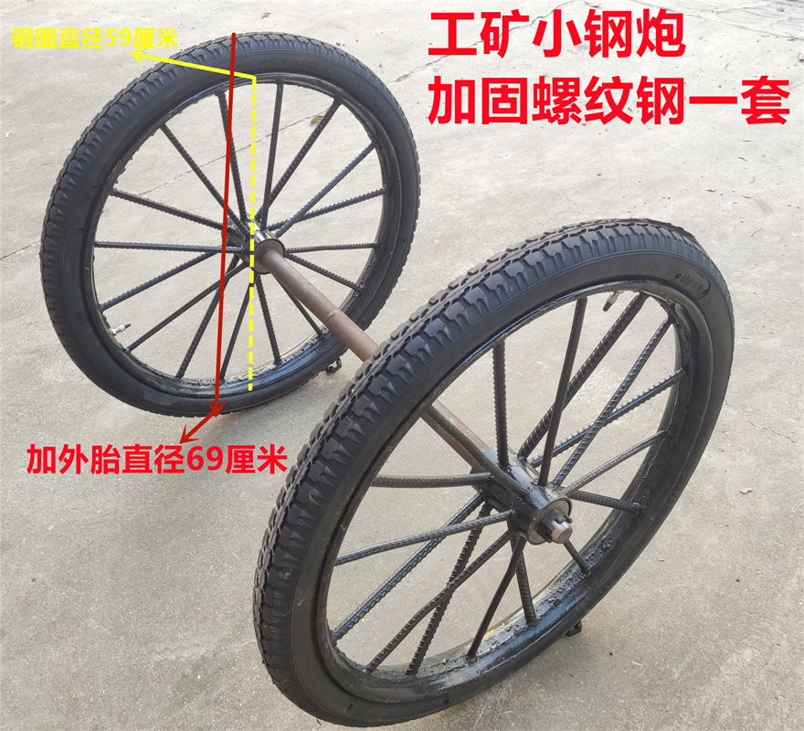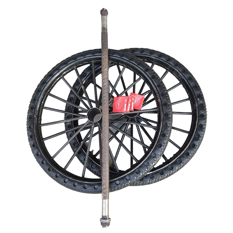 Reinforced solid single wheel (steel ring outer tire mounted well) Reinforced solid set (fully equipped) reinforced inflatable single wheel (steel ring inside and outside tire mounted well) Reinforced inflatable set (fully equipped)