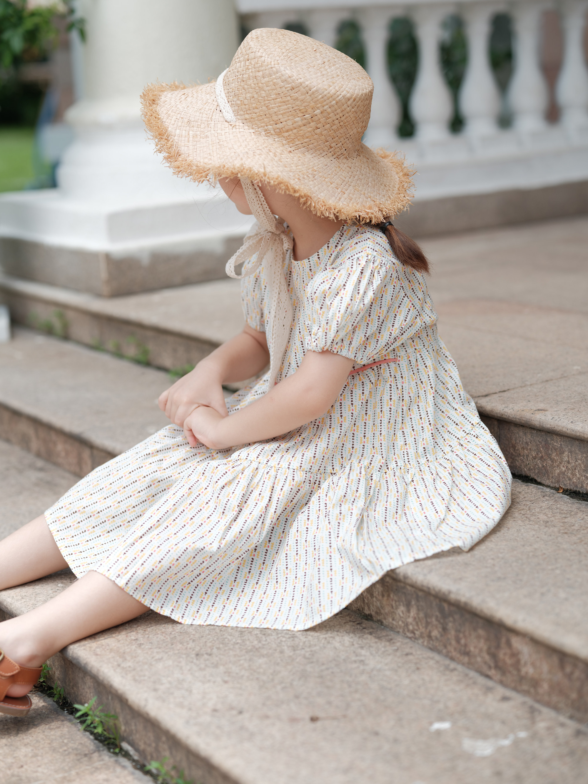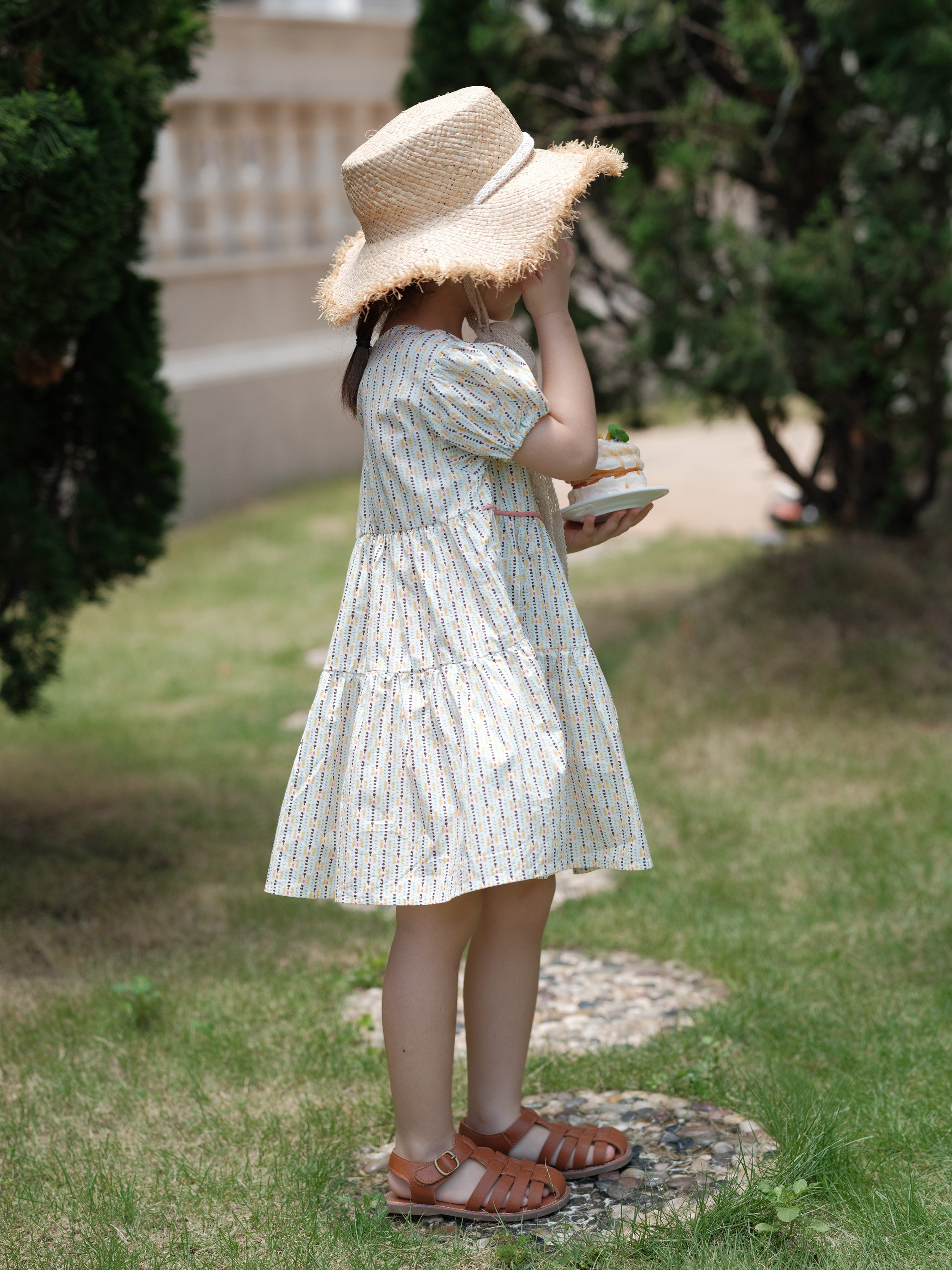 Chuxu 2022 summer brown-yellow striped European and American casual style pure cotton girls' dress A-line skirt