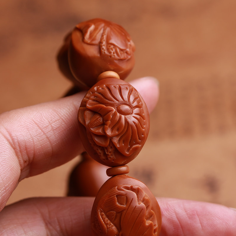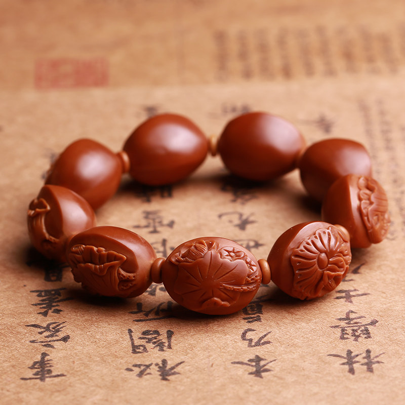 Olive core lotus pond moonlight bracelet lotus olive Hu core carving Buddha bead bracelet men and women text play with Su Gong handmade