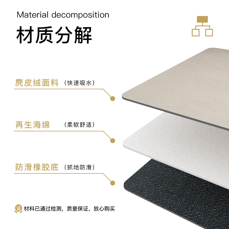 Bathroom Ground Mat Water Absorbent Non-slip Rug Toilet Makeup Room Mat Bathroom Doorway Quick Dry Home Pure Color Foot Mat