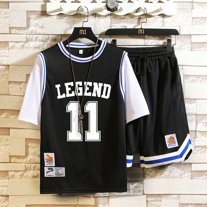 Basketball Irwin Jersey Teen Junior High School Student Fake Two Speed Dry Short Sleeve T-shirt Sports Basketball Clothes Suit