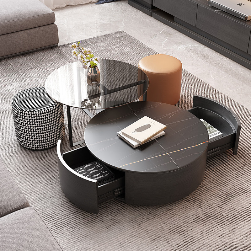 Light luxury slate coffee table TV cabinet combination small apartment living room modern minimalist multifunctional creative round coffee table table