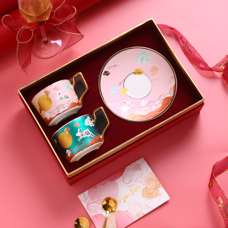 Promising future in pair cup gift box (1 green and 1 orange) like fish in water pair cup gift box (1 green and 1 orange) along the way with pair cup gift box (1 green and 1 powder) cute rabbit flying to the moon pair cup gift box (1 green