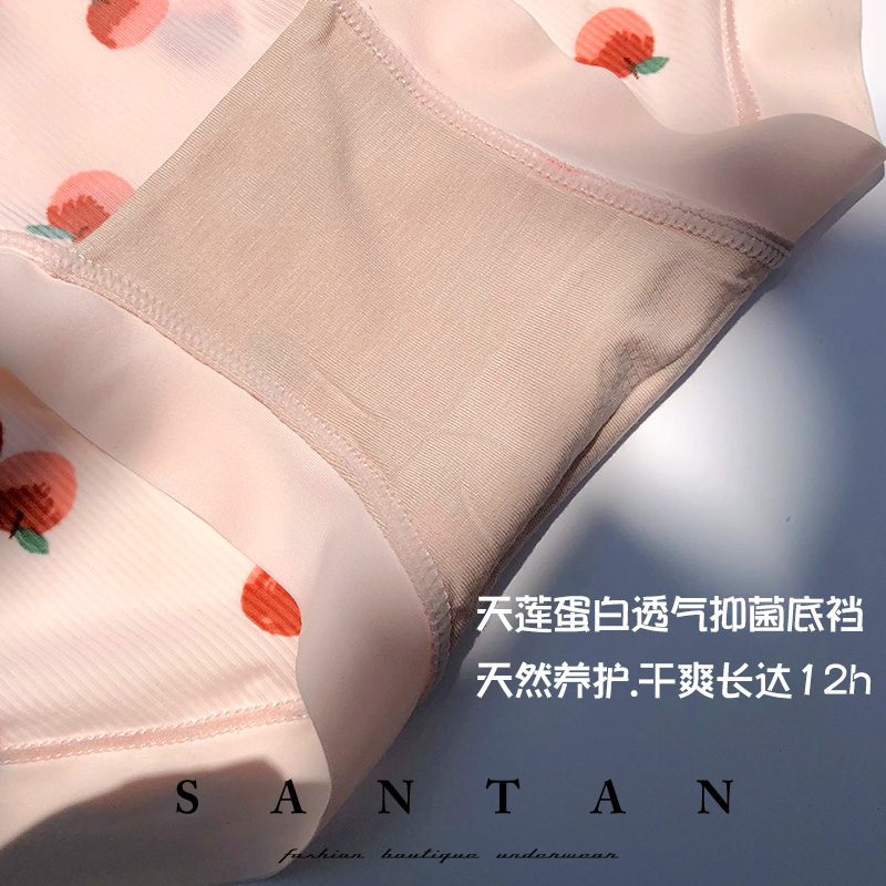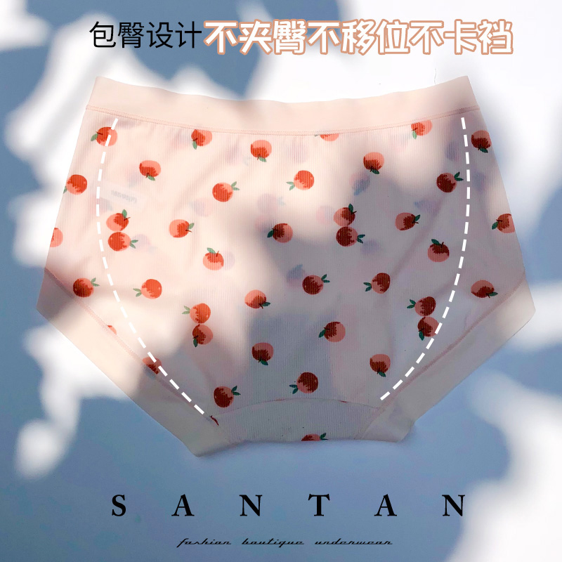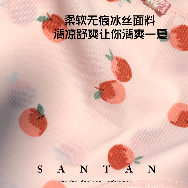 Sweet protein moisturizing ice silk seamless underwear for women cute printed strawberry summer breathable briefs large size