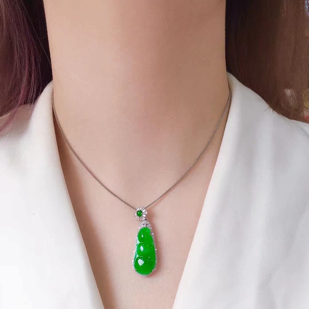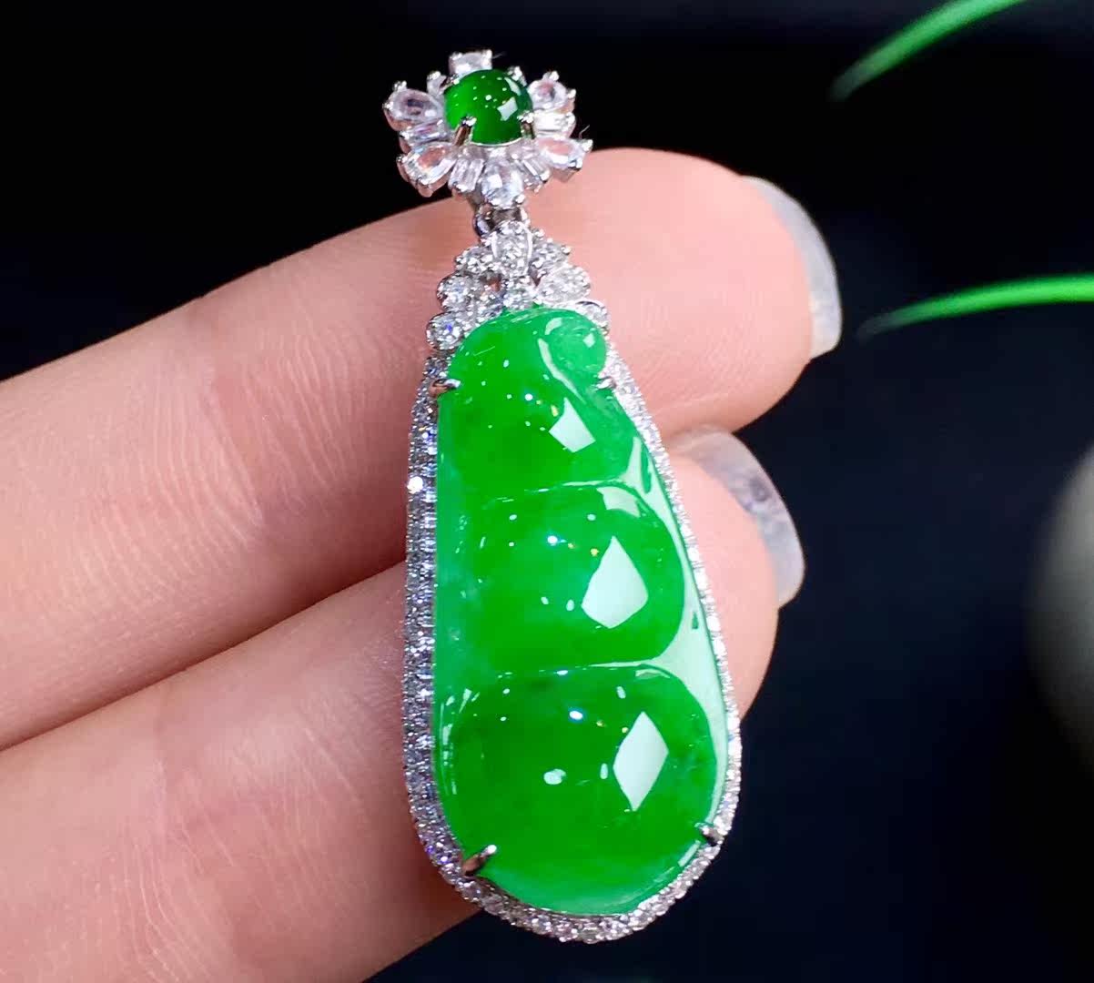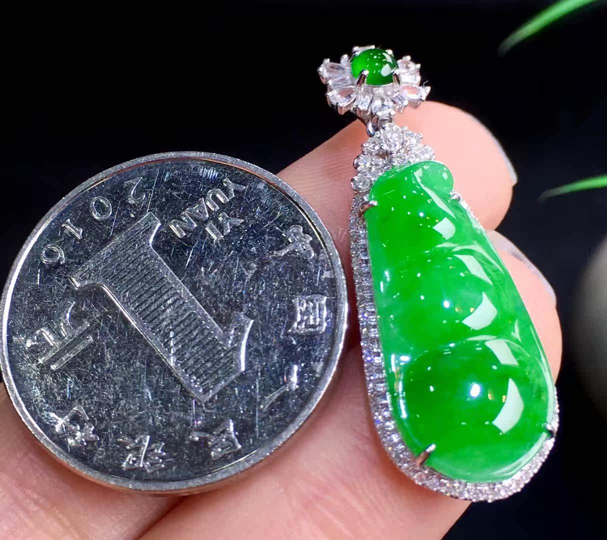 Natural Burma A - cargo jade pendant ice full green sun green green bean 18 K gold jade