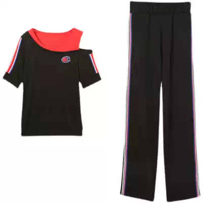 TOUCH MISS light luxury brand leisure sports suit female xiyangpai road shoulder short sleeve wide leg pants two-piece set