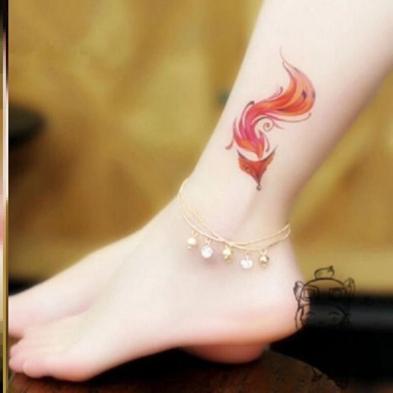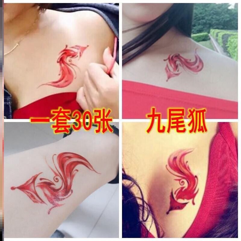 Waterproof Tattoo Sticker Nine Tailed Fox Woman Persistent Korea Emulation Chest Wrist Ankle Black And White Sexy Chest Small Fox