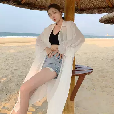 Sunscreen clothes cardigan women's 2021 summer new beach super fairy chiffon thin blouse loose bikini swimsuit jacket